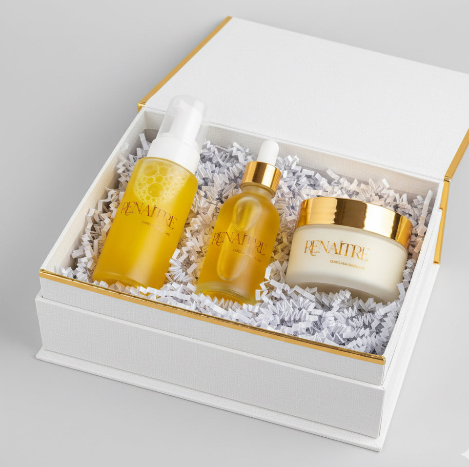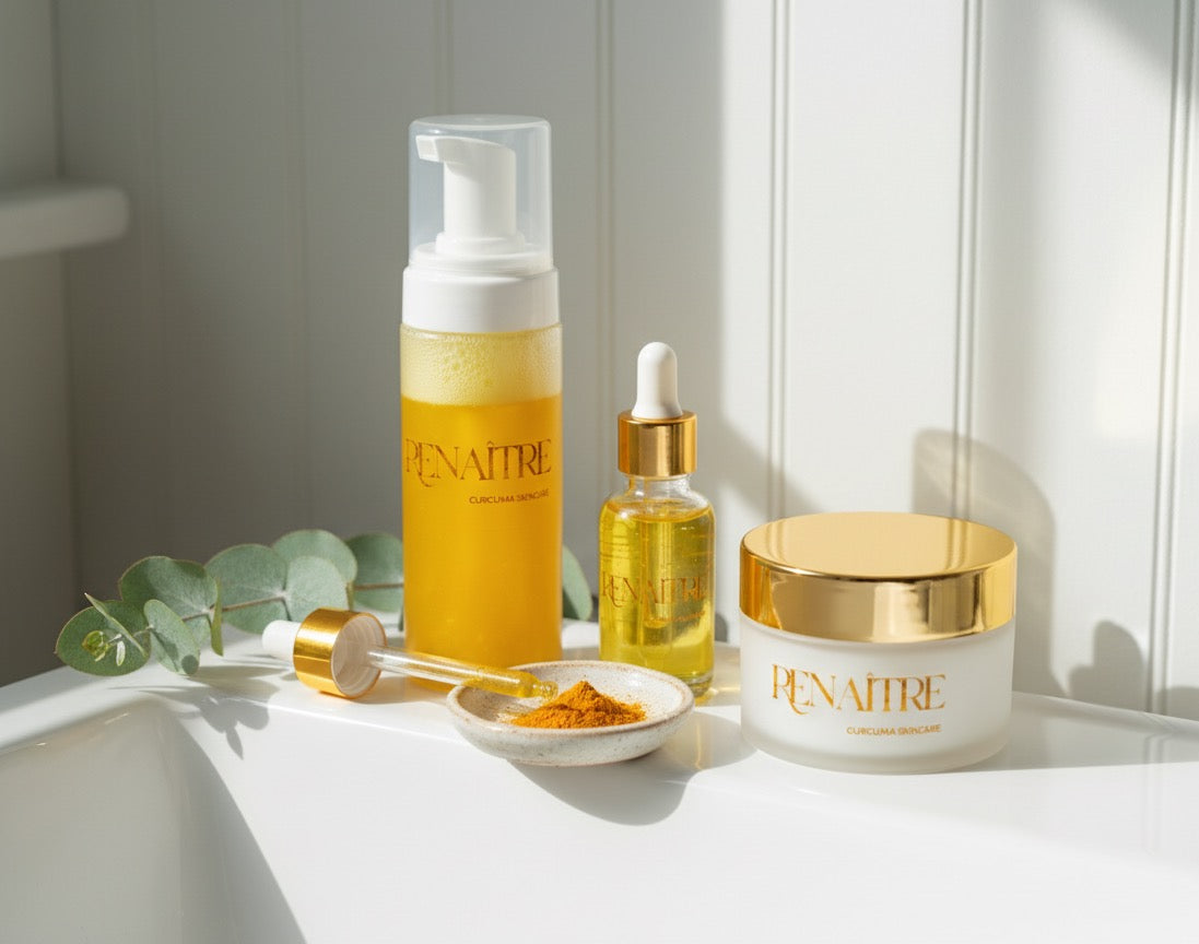 Chez RENAÎTRE, nous savons que le luxe véritable réside dans l'efficacité visible et rapide. Votre temps est un atout précieux, c'est pourquoi notre équipe d'experts a méticuleusement sélectionné les trois piliers d'une routine de soin haute performance et express, tous enrichis au Curcuma, reconnu pour son pouvoir illuminateur et antioxydant exceptionnel.